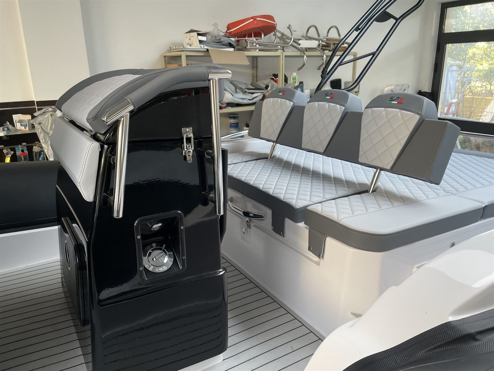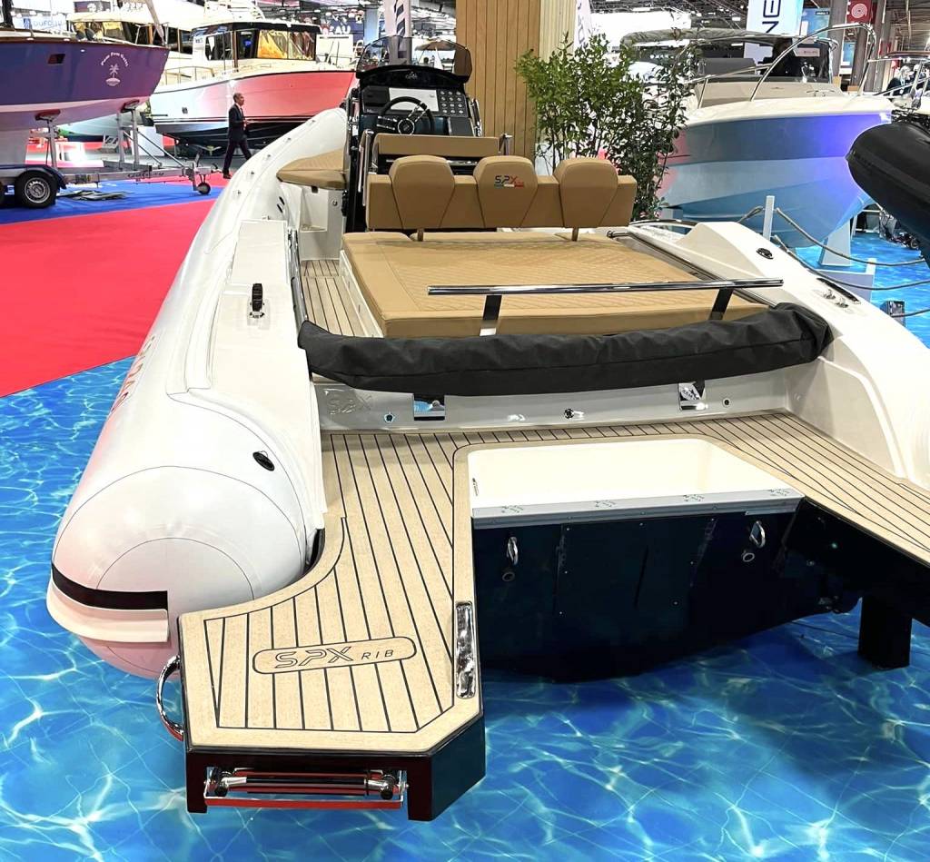 ContattaciConcessionario ufficiale di SPX Rib - Blue Navy Nautica - propone in vendita il gommone Spx 24 SPORT in PRONTA CONSEGNA; accessoriato con seguenti optional: Roll bar in acciaio Aisi 316 L colore nero; Tendallino su Roll bar nero, Salpancora elettrico 700w + ancora INOX 5kg + 25mt di catena; personalizzazione tubolari CARBON GRIGIO; prolunga prendisole di poppa; cucinerai Sun Tropical Beige 6014; personalizzazione gelcoat coperta nero; personalizzazione consolle / seduta lancette e musone gelcoat lucido nero; personalizzazione gelcoat carena NERO; passamano di risalita in acciaio INOX 316; TEAK piativo fuga nera; VHF; Hi-Fi HERTZ con monitor Lcd con 4 altoparlanti con amplificatore.